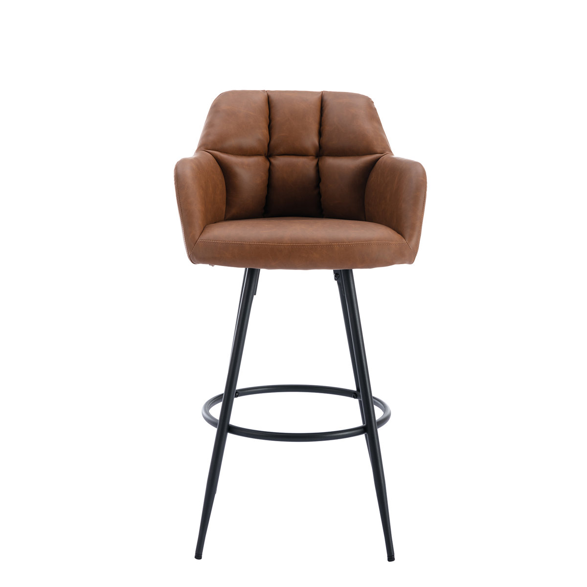 24" Bar Stools Set of 2, Modern Faux Leather Counter Height Bar Stools with Low Back and Footrest, Sturdy Thickened Metal Leg, Upholstered Kitchen Bar Chairs for Island, Brown