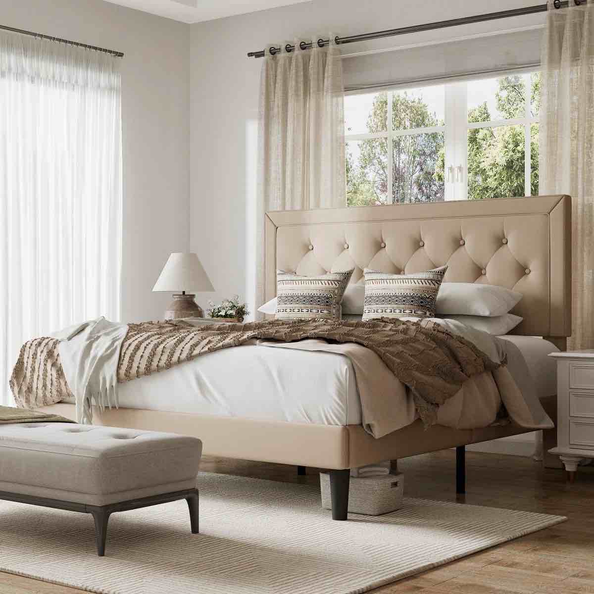 dunphy upholstered platform bed with adjustable headboard