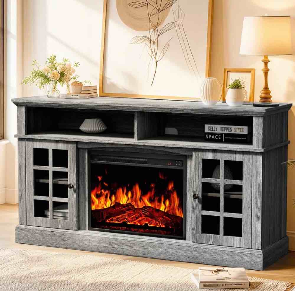 Amolife King Size Metal Bed Frame with Upholstered Headboard, Dark Grey