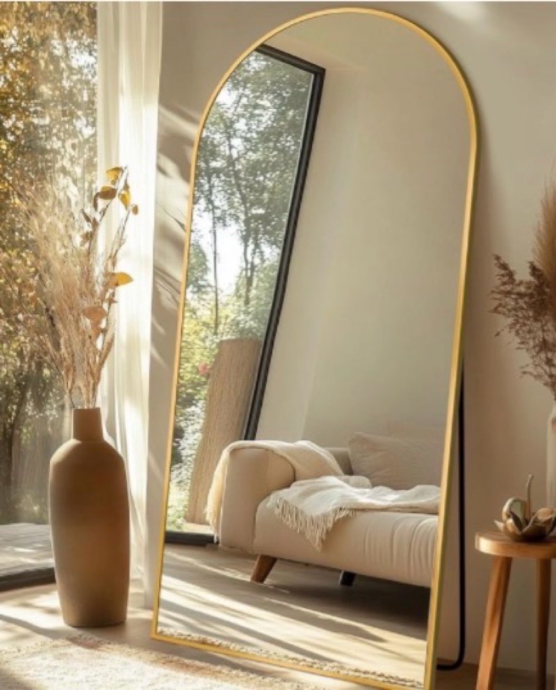 antok full length mirror, 46"x86" oversized floor mirror with stand for bedroom, living room cloakroom, gold, arch style 86"l x 46"w arch style gold