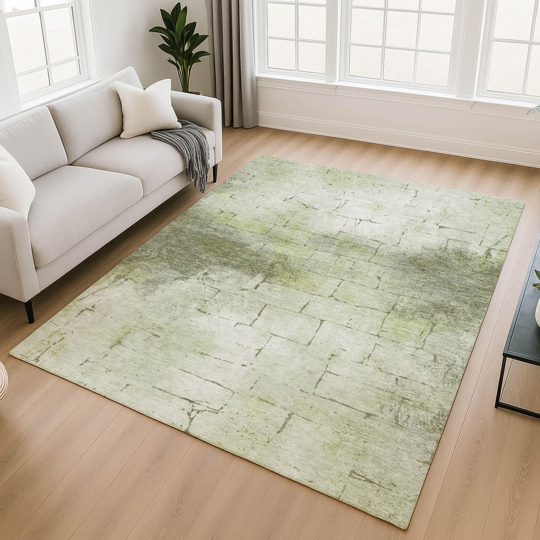 Washable Area Rug, 9'x12', Soft, Ultra Thin, Boho Waffle Print, Large Indoor Rug, Grey Grey 9' x 12' (Rectangular)