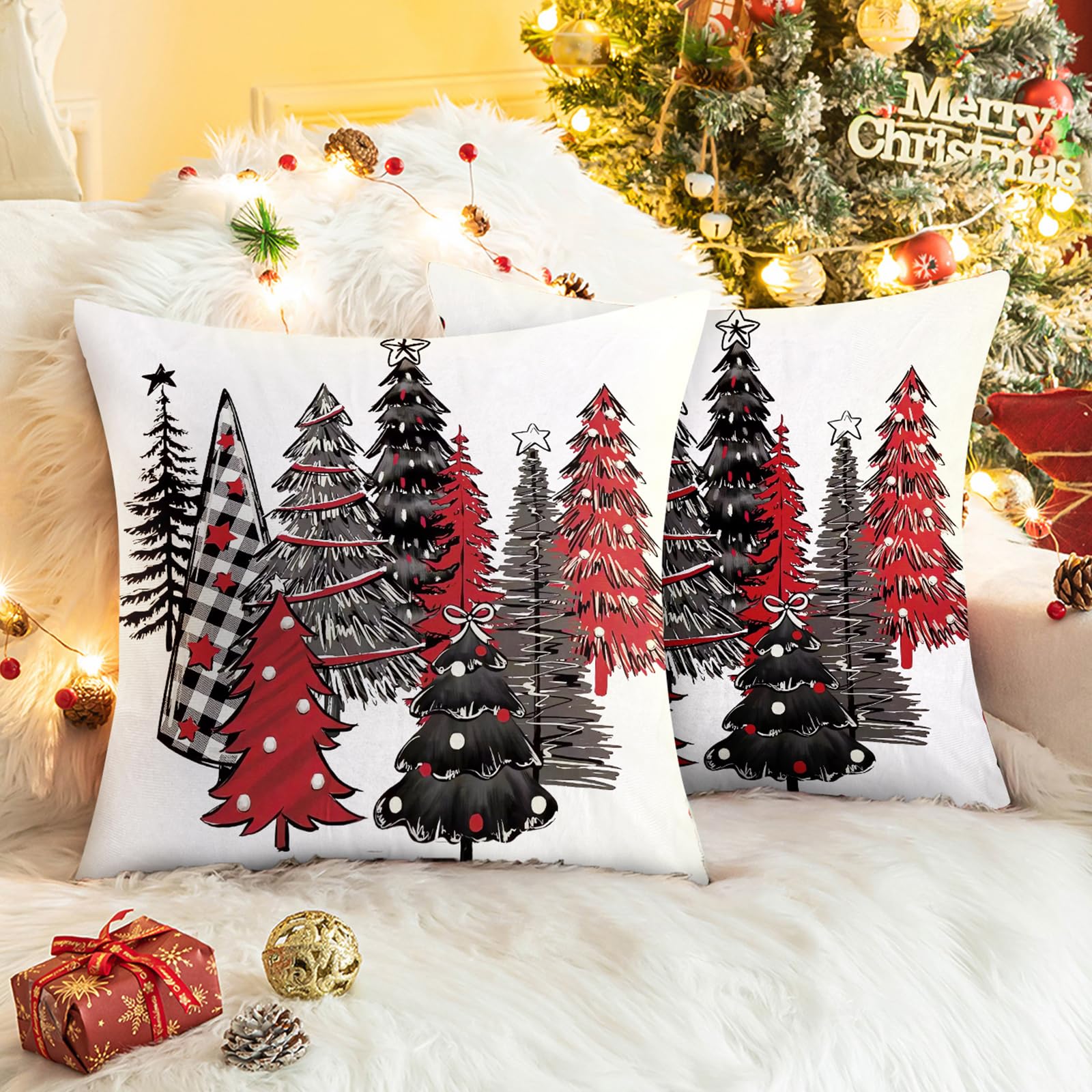 9Pcs Mini Christmas Trees Christmas Decor Artificial Christmas Decorations with 4 Sizes, Christmas Tree Bottle Brush Trees Christmas Table Decorations (Green Silver Black)