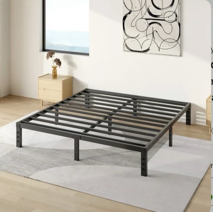 concetta 14" king bed frame, heavy duty metal bed frame with underbed storage, no box spring required