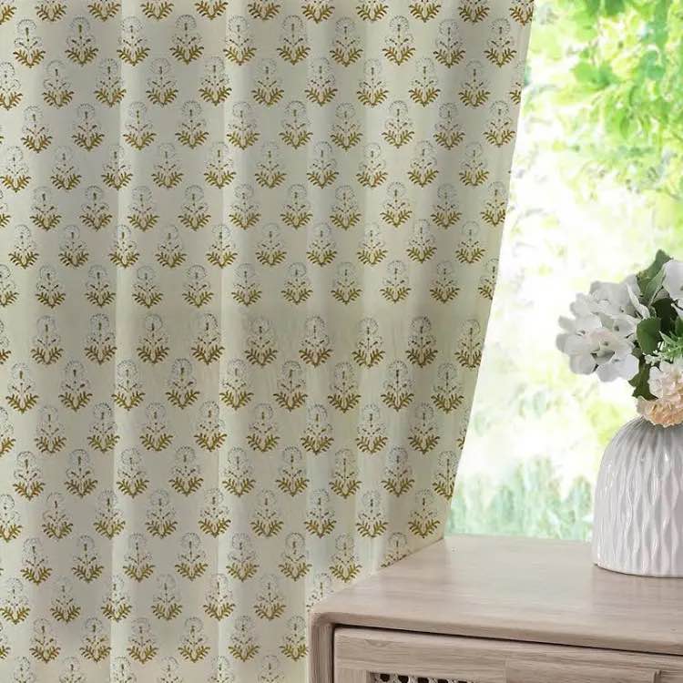 Blue, Handmade 100% Blackout Soft and Cozy Pure Linen Roman Shade with Floral Block Print for Window Corded Blinds, Home Décor French Doors, Window Treatment, Rameshwaram