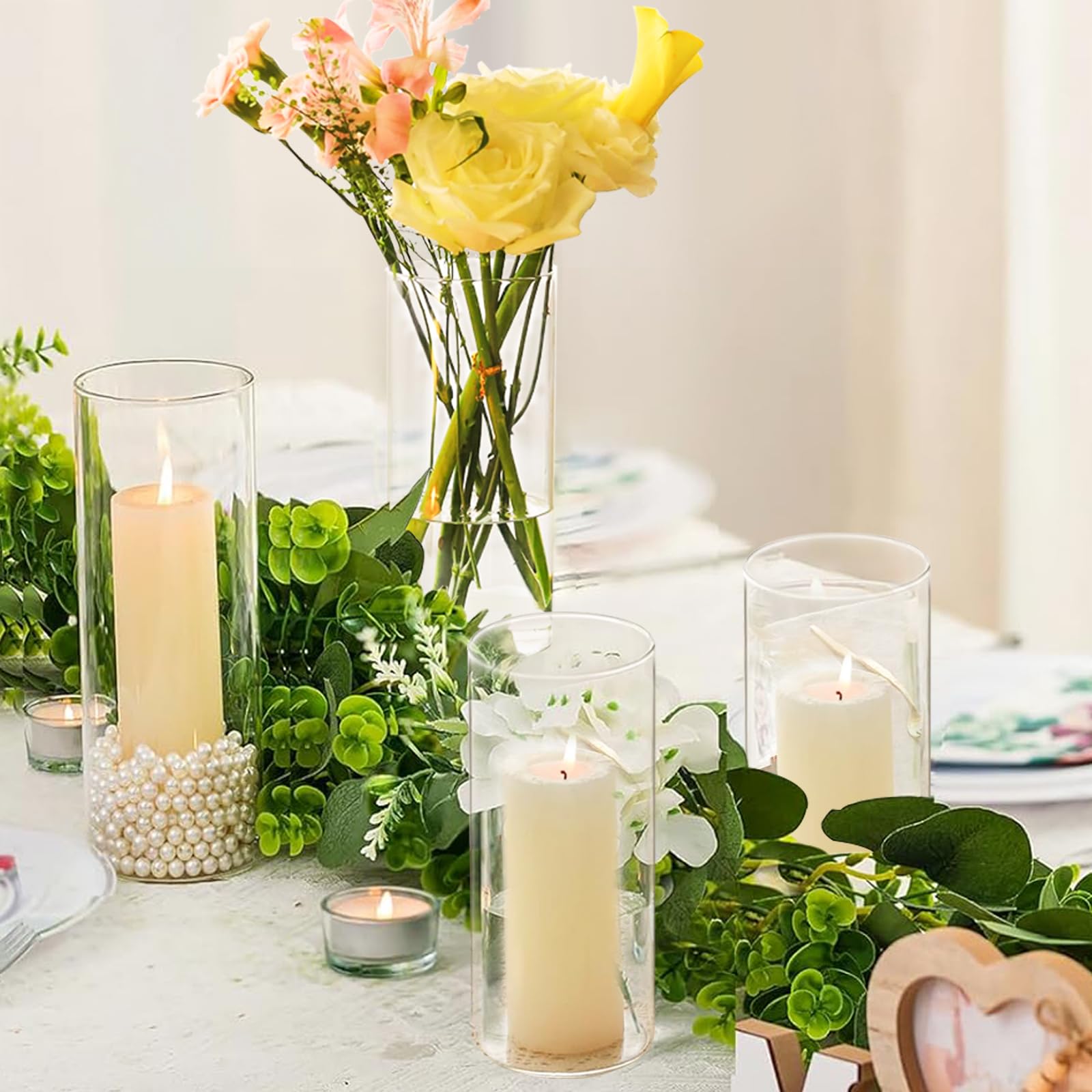 7Pcs Glass Cylinder Vase for Centerpieces 10 Inch Tall Clear Glass Flower Vase Bulk, Glass Hurricane Candle Holder Floral Vases for Table, Floating Candle Vases for Wedding Home Décor