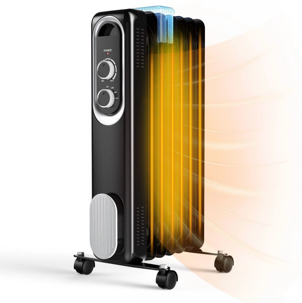 nftigb 24" tower heater, 1500w ptc ceramic electric space heater with digital thermostat, remote, 70° oscillation, eco mode and safety tip-over protection, gray