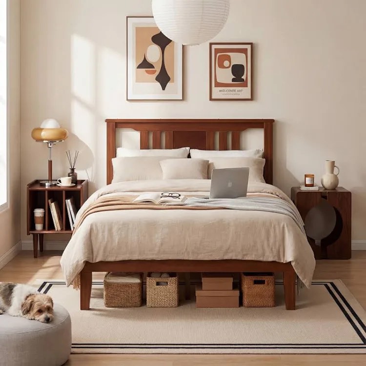 oval coffee table for living room, 43.3” farmhouse coffee tables with storage, 2-tier wood center table with storage shelf low tea table for small space, home, office, easy assembly (walnut)