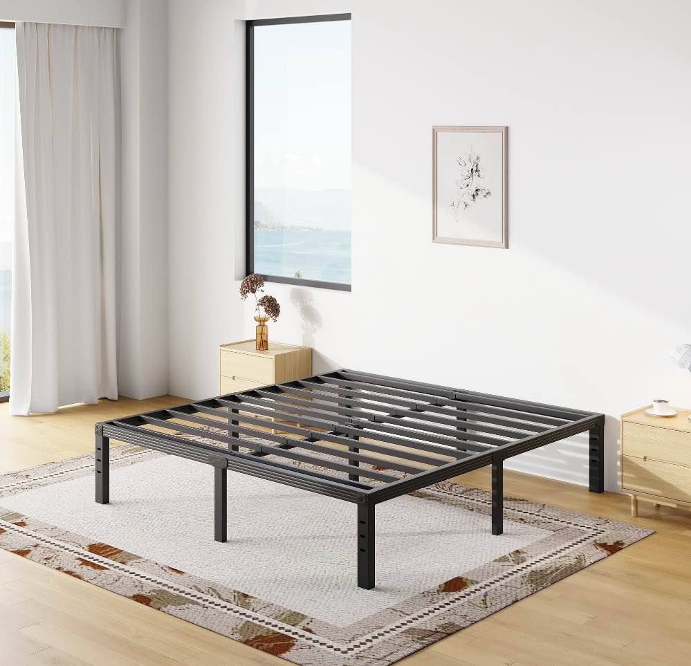 comasach 18 inch full bed frame, easy assembly, heavy duty metal platform, noise free, black