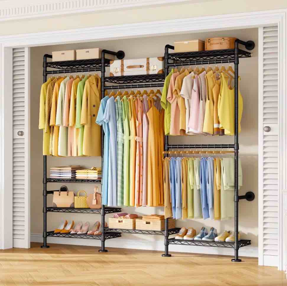Our COOKCOK 5-Tier Metal Storage Shelving Unit with Wheels. Foldable Shelf for Storage is constructed with powder-coated steel offers durable enough shelves to hold heavy bins and boxes. This garage storage shelf each shelf holds up to 150lbs(without wheels) if installed wheels each shelf only hold <150lbs(the top tier do not suggest put heavy duty goods). Slippery and durable wheels which can be rotated 360 degrees 2 of which have a locking function so there is no need to worry about slipping. When folded it can be placed in a narrow gap behind the door etc saving space when not in use and the side guardrail design can prevent objects from falling. No Assemble Required easy to use. Adult.