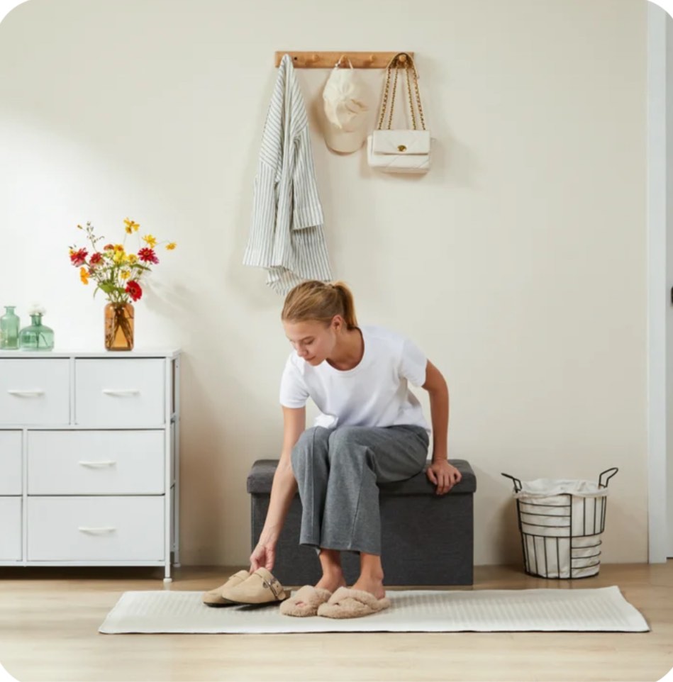 Satifur White Writing Desk with Drawers & Hooks, 34" Computer Desk with 2 Fabric Drawers