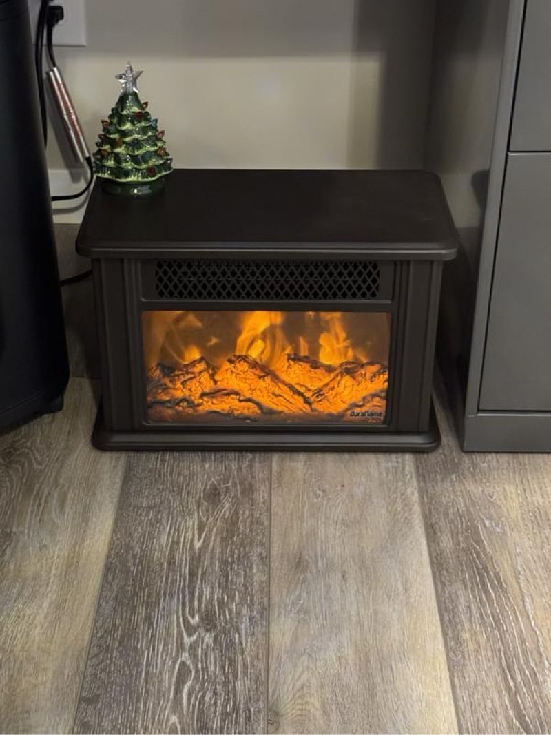 Current bidDuraflame 28 in. Electric Lantern with Infrared Heat and Remote Control in Black