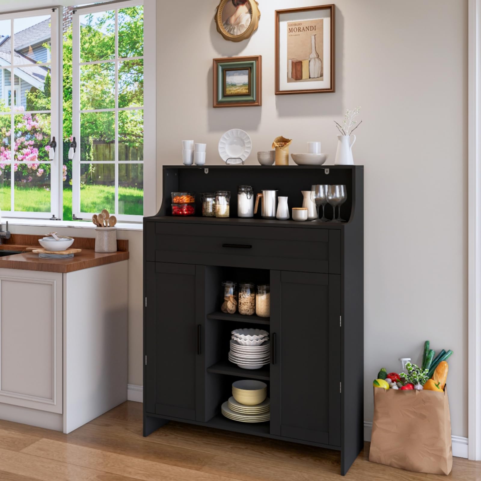 5 tier folding shelf with wheels,metal steel collapsible shelves,no assembly portable shelves organizer rack,rolling standing utility rack for kitchen, pantry, office, black black 5 tier-new