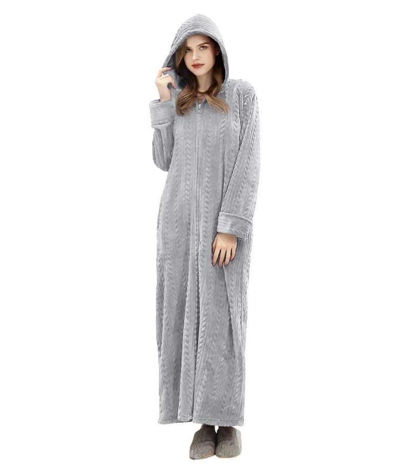 LOFIR Womens Zipper Front Robe, Long Plush Hooded Fleece Soft Bathrobes for Women Housecoat Sleepwear Pajamas S,M Black)