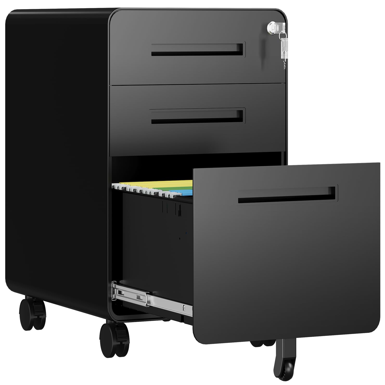 Retractable Garden Hose Reel - 1/2 inch x 50ft Wall Mounted Hose Reel with 3/4 inch Brass Fitting & 10 Function Sprayer Nozzle - Any Length Lock, Auto Rewind System, 180°Swivel Bracket - Black