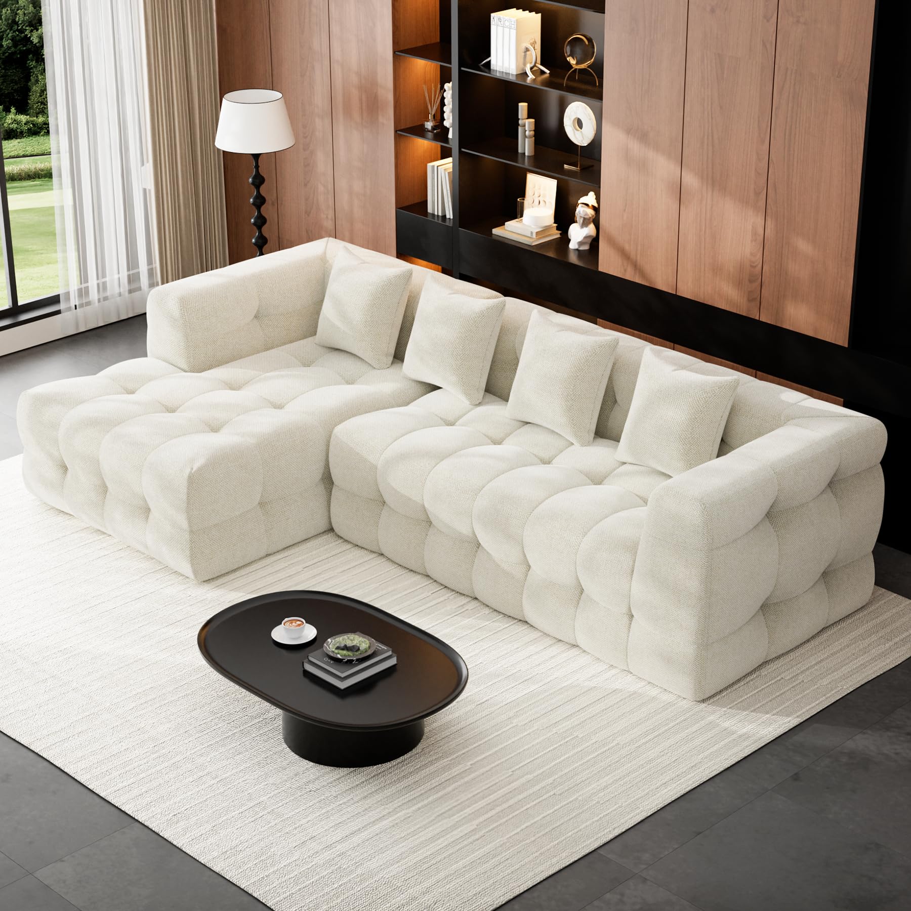 This tufted sectional sleeper sofa combines style, comfort, and versatility for modern living rooms, apartments, and family spaces. With its pull-out sleeper function, this sofa easily transitions from a U-shaped sectional couch to a sofa bed, perfect for guests or added lounging space.