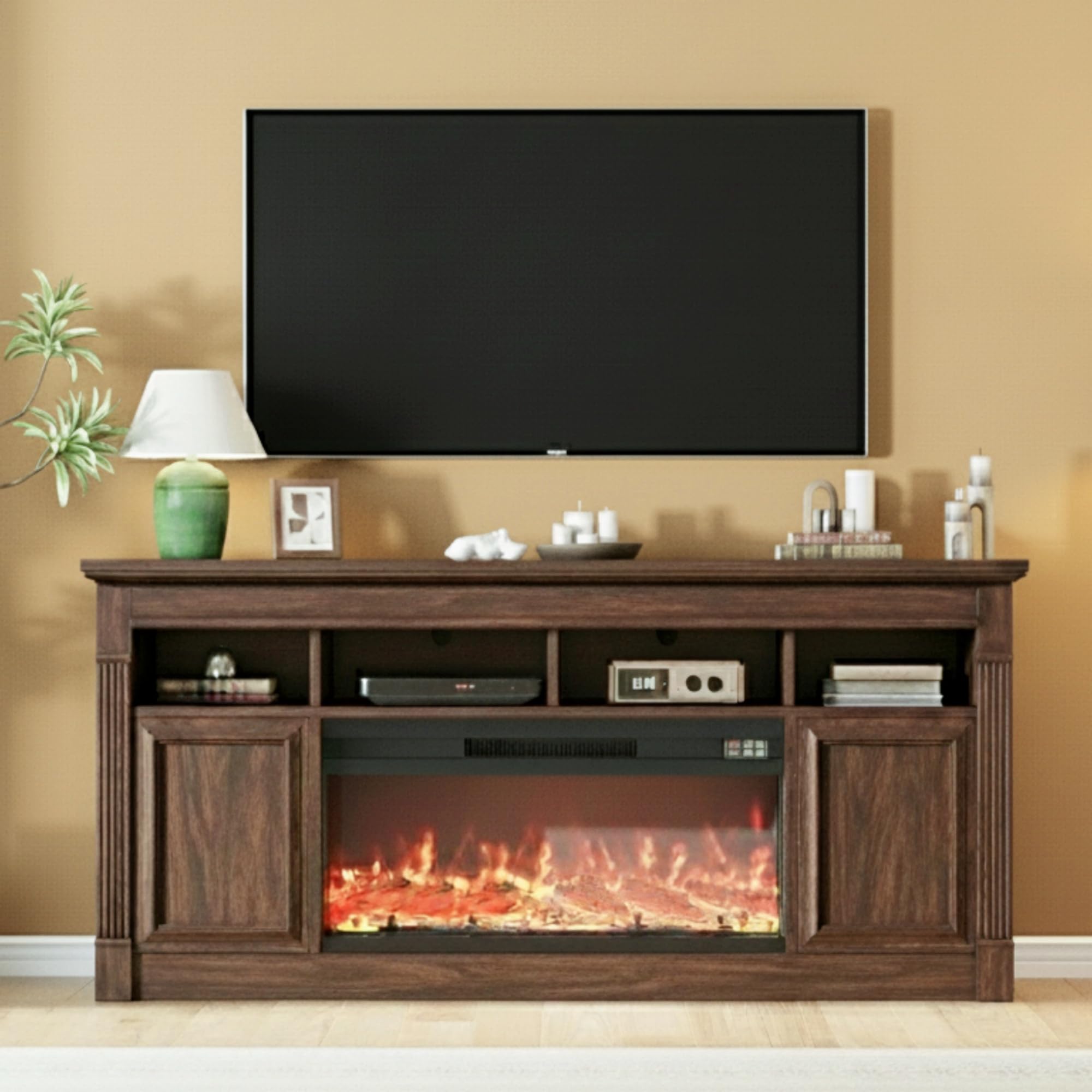 King Size Bed Frame with Farmhouse Headboard, Malaysian Oak Queen Bed Frame No Box Spring Needed, Platform Bedframe with 12 Slats Support, Easy Assembly, Antique Espresso