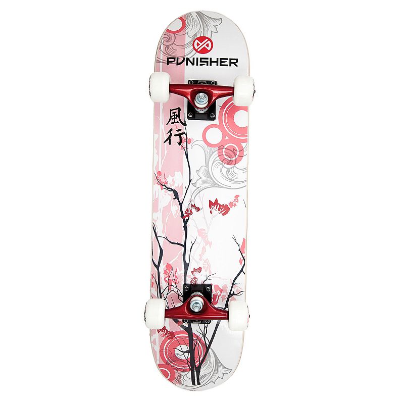 This Punisher Skateboards Cherry Blossom Pink and White Kids Skate Helmet includes two sets of removable pads. It comes in a medium size but the extra set of pads can be used to make it slightly smaller if needed. This all-sport medium helmet features an ABS shell with a gloss exterior and four-color PVC printing. It also comes with an 11-vent design to keep your child s head cool an EPS shell liner and an adjustable chin strap to ensure a comfortable fit.