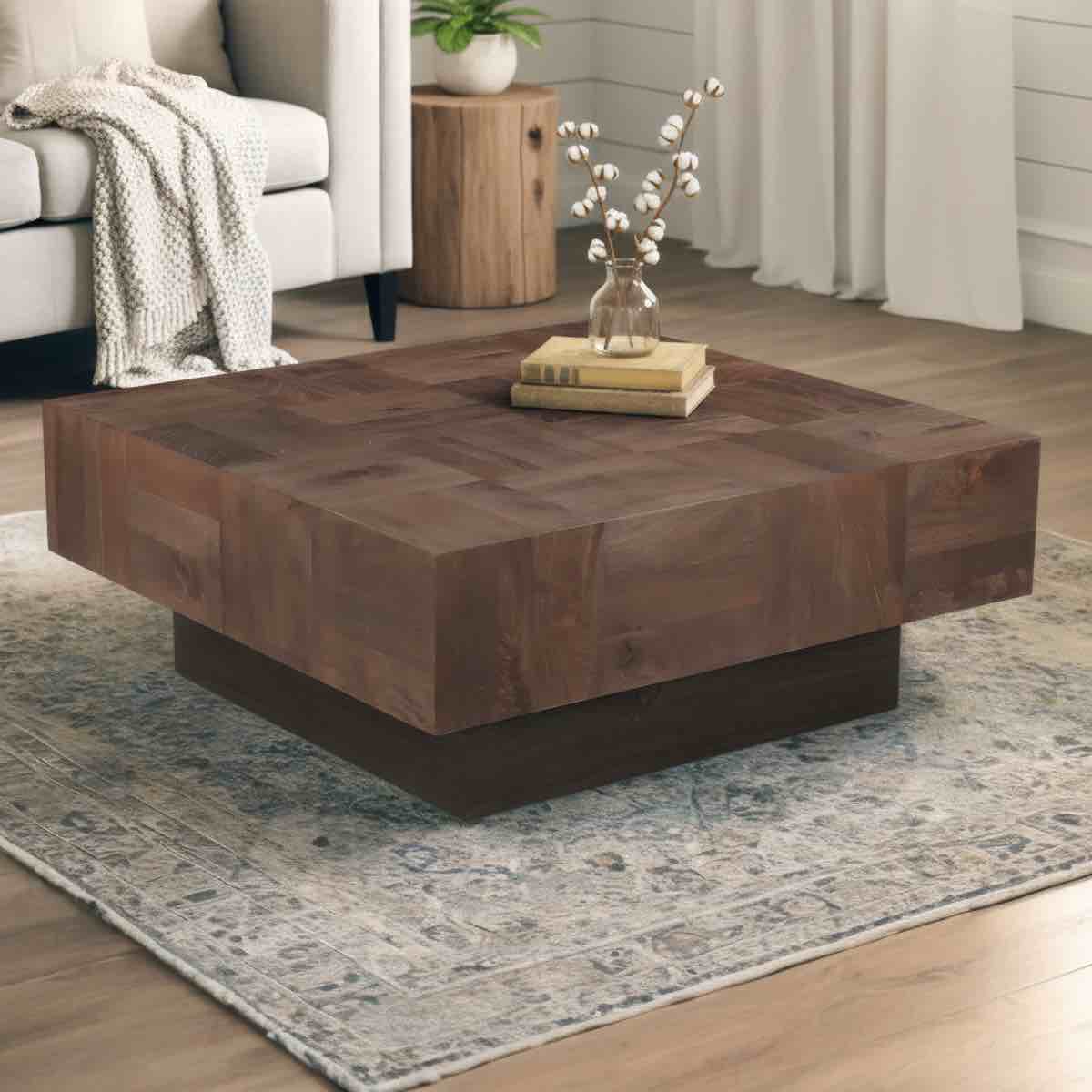 Round Coffee Table with Natural Wood Grain for Living Room