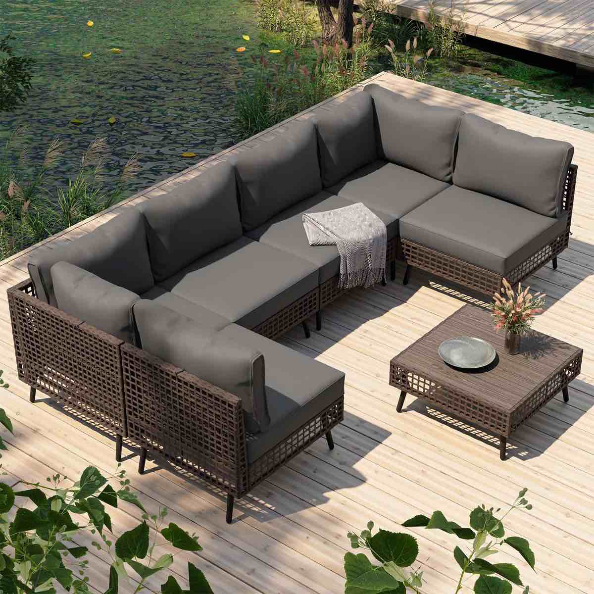 SEE DESCRIPTION Full Size Upholstered L-Shaped Upholstered Daybed with Twin Size Pop Up Trundle, Gray