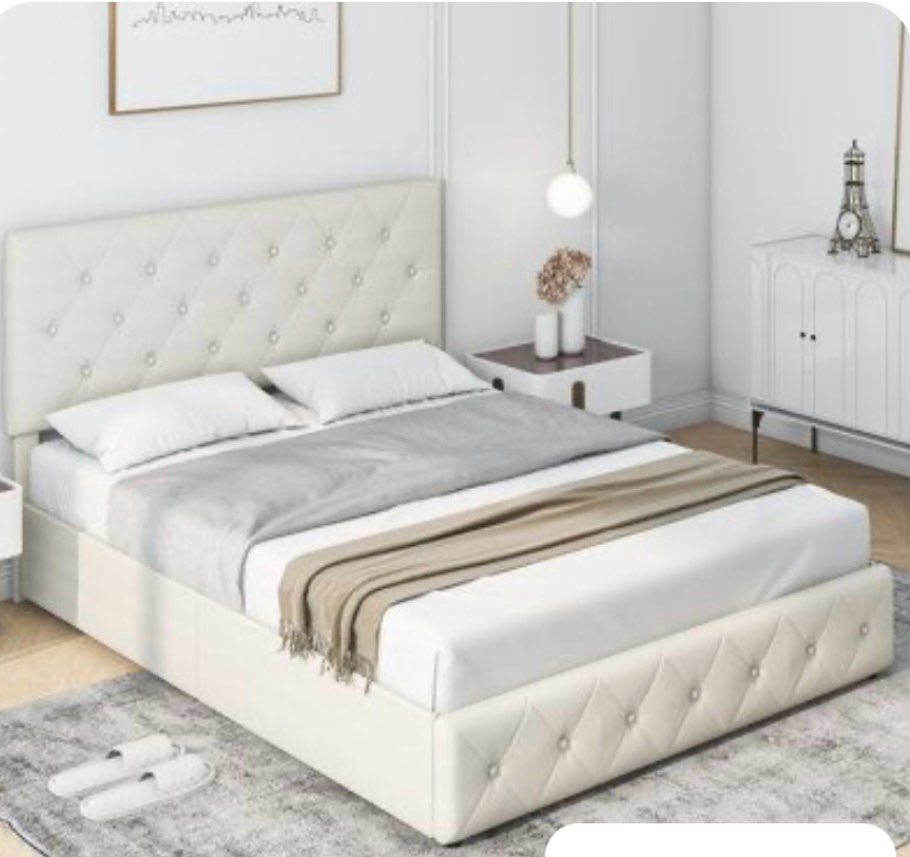 Upholstered Platform Bed, Modem Bed Frame with Velvet Headboard,color black (image similar )