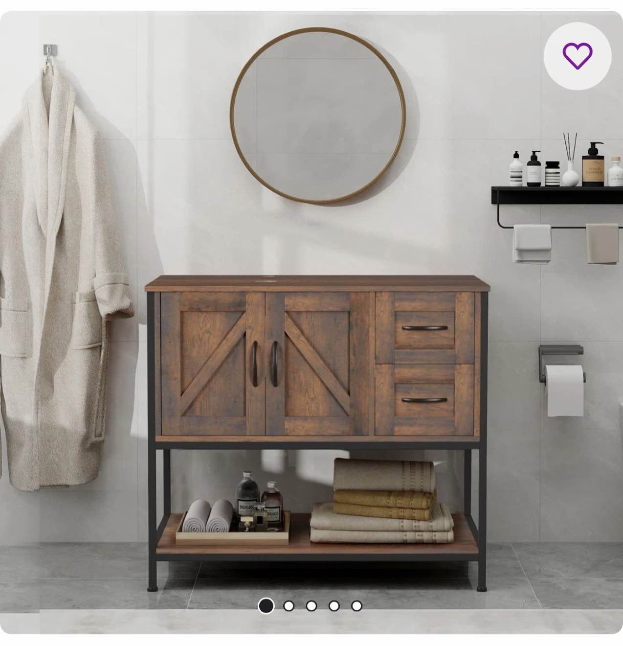 walnut wood grain pattern round coffee table with 2 storage for living room