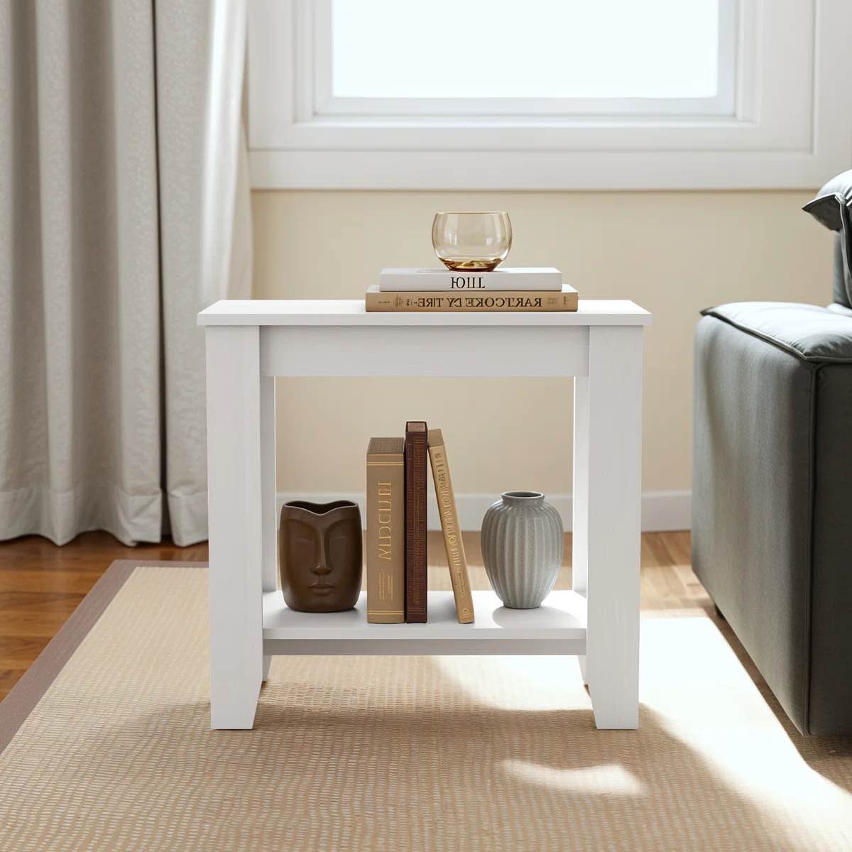 Weddel Basilico End Table with Storage, White Wood