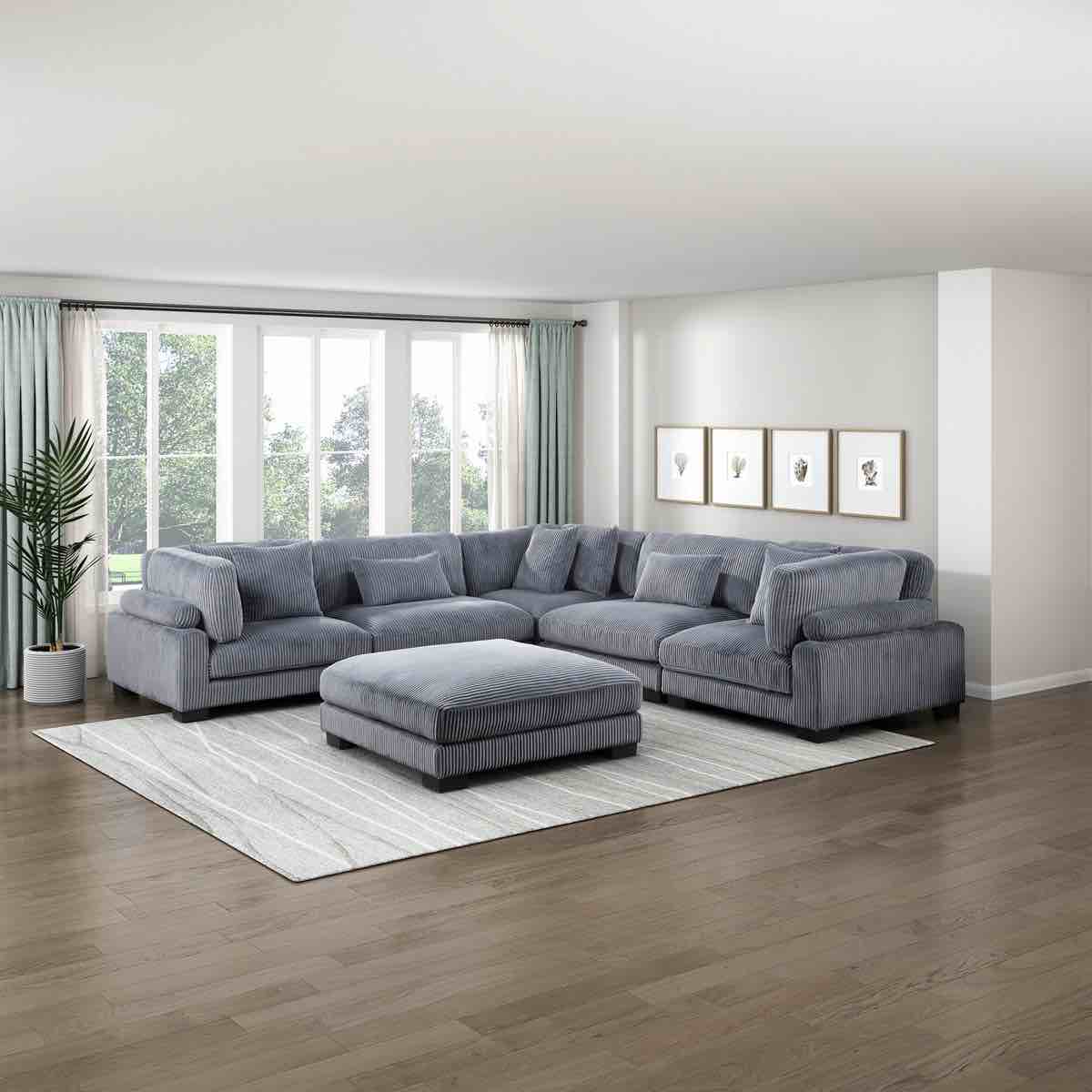 Designed for larger living rooms or open layouts, this 6-piece U-shaped sectional offers generous seating with a relaxed, modular design.