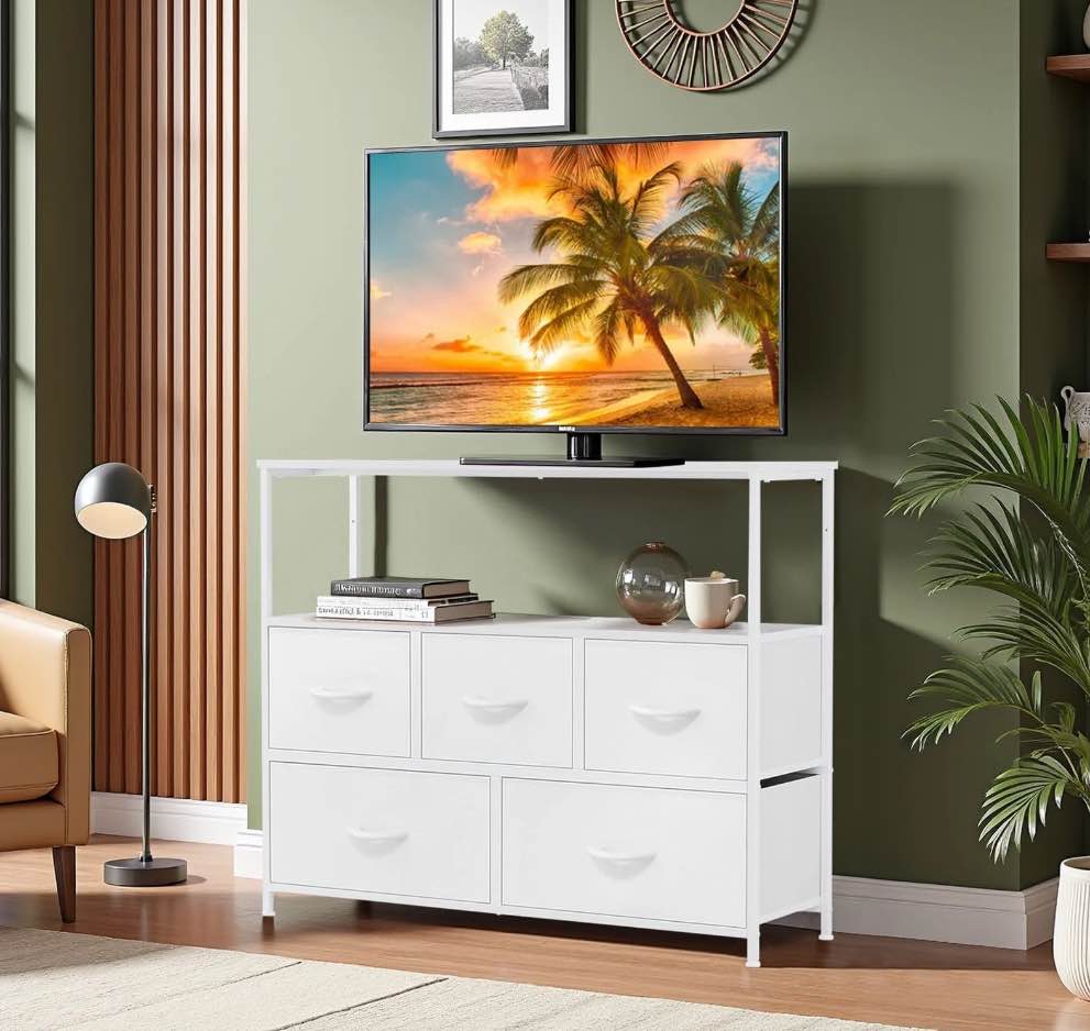 Current bidZUNMOS Fabric Storage Dresser with 9 Drawers, Steel Frame and Wooden Top for Bedroom, Closet and Entryway , White